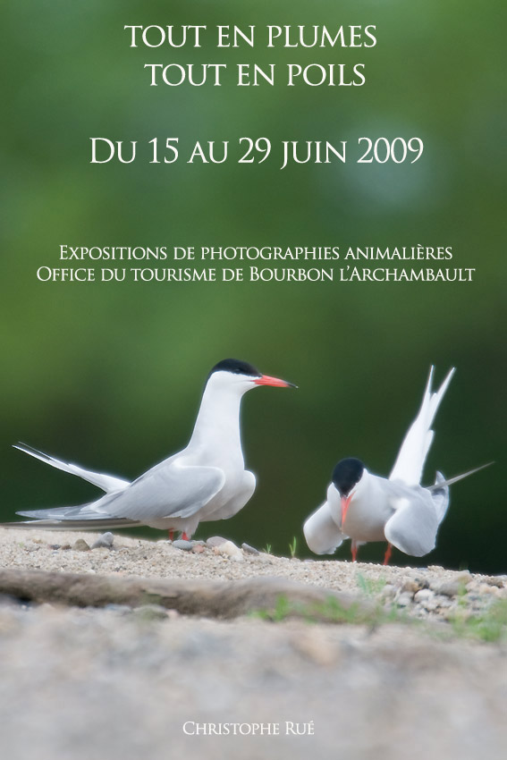 Du 15 au 29 juin 2009, je vous propose grâce à l’Office de tourisme et de thermalisme de Bourbon l'Archambault un aperçu de mon travail photographique dédié aux paysages et à la faune de l'Allier. Je présenterai dans les Vitrines de Pays situées à l’Office de Tourisme de Bourbon l'Archambault des photographies en plusieurs formats. Pour les visiteurs de "Nature Sauvage" expo de fin 2008 à Moulins, il y aura des photographies récentes, donc n'hésitez pas à venir. Merci à Patricia Martinet. J'annoncerai les prochaines expositions de fin d'année à l'automne. A bientôt.