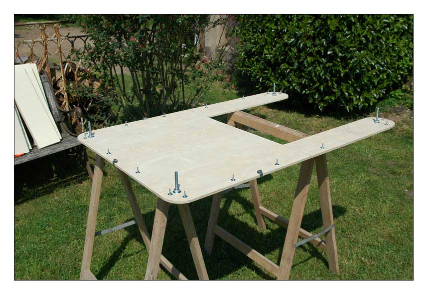 Préparation du contre plaqué marine, perçage et installation des visseries