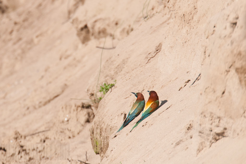 Comme en 2008, j’ai décidé de suivre une colonie de Guêpiers d’Europe. J’ai trouvé un belle colonie au bord de la rivière Allier, c’était sans compter sur le printemps extrêmement pluvieux et froid qui ont fait échouer la première couvée. J’ai aussi douté de la réussite de leur nidification, qui finalement fût tardive. Mais cet oiseau au fort  caractère et aux comportements vifs est toujours un plaisir pour le photographe mais aussi un défi.