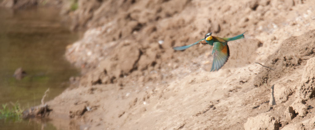 Comme en 2008, j’ai décidé de suivre une colonie de Guêpiers d’Europe. J’ai trouvé un belle colonie au bord de la rivière Allier, c’était sans compter sur le printemps extrêmement pluvieux et froid qui ont fait échouer la première couvée. J’ai aussi douté de la réussite de leur nidification, qui finalement fût tardive. Mais cet oiseau au fort caractère et aux comportements vifs est toujours un plaisir pour le photographe mais aussi un défi.