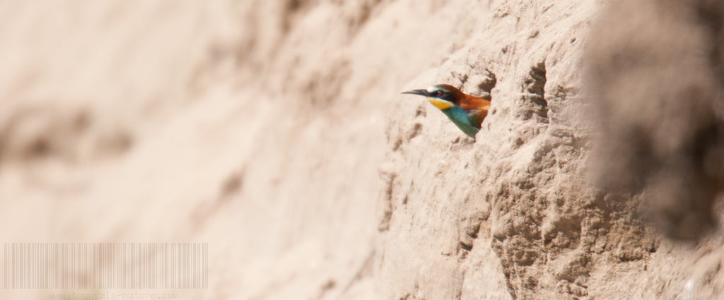 Comme en 2008, j’ai décidé de suivre une colonie de Guêpiers d’Europe. J’ai trouvé un belle colonie au bord de la rivière Allier, c’était sans compter sur le printemps extrêmement pluvieux et froid qui ont fait échouer la première couvée. J’ai aussi douté de la réussite de leur nidification, qui finalement fût tardive. Mais cet oiseau au fort caractère et aux comportements vifs est toujours un plaisir pour le photographe mais aussi un défi.